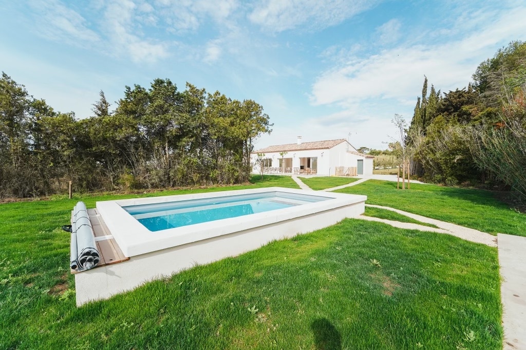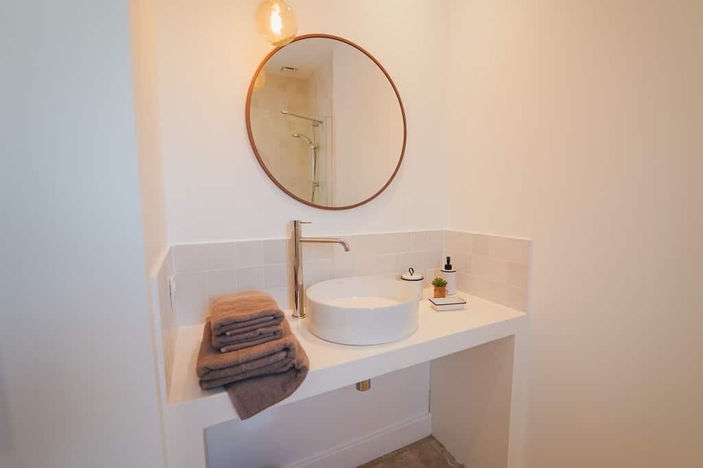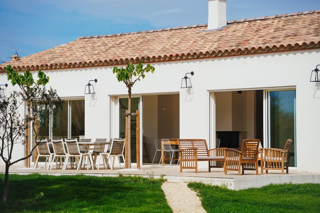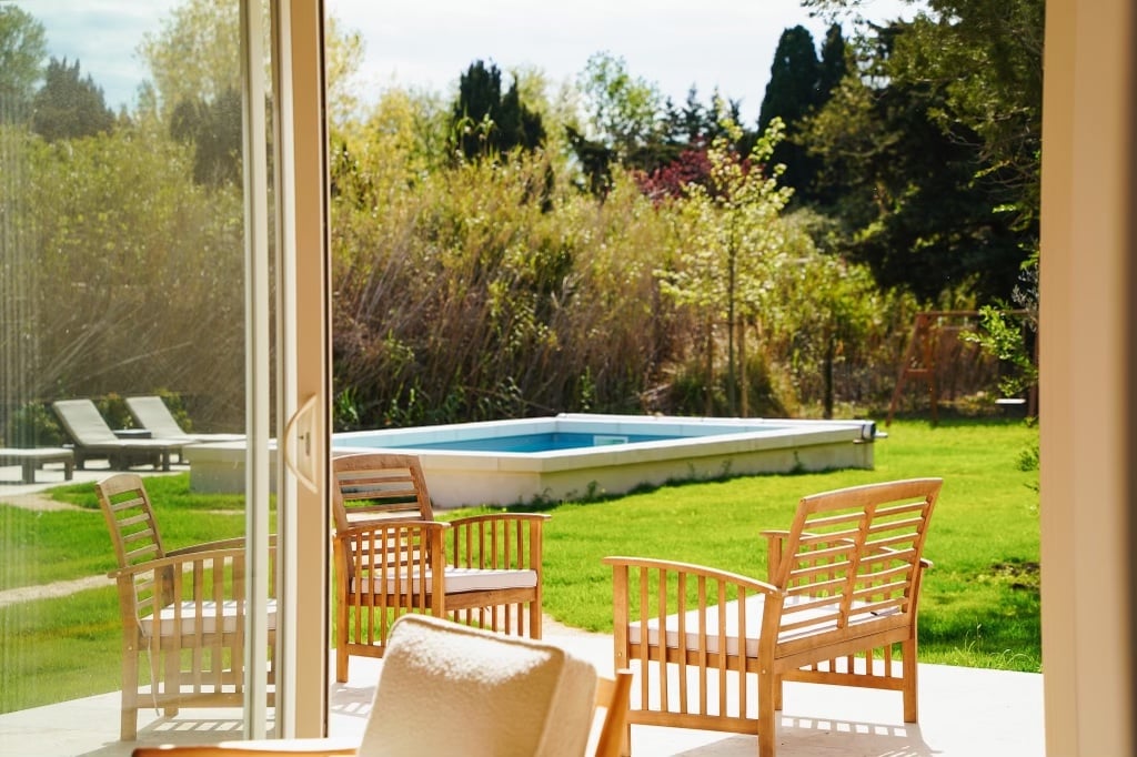 L’espace extérieur arboré de 1600 m² comporte une piscine d’esprit « abreuvoir » en pierres de taille avec un espace « plage » où petits et grands pourront tour à tour s’amuser et se relaxer. Un terrain de pétanque vient agrémenter le jardin, pour savourer les longues soirées d’été entre amis. Le gîte possède également un parking avec borne de chargement électrique.